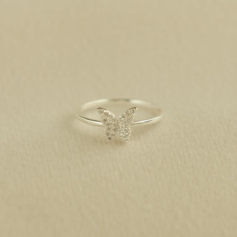 Anel prata 800 aro fino borboleta cravejada