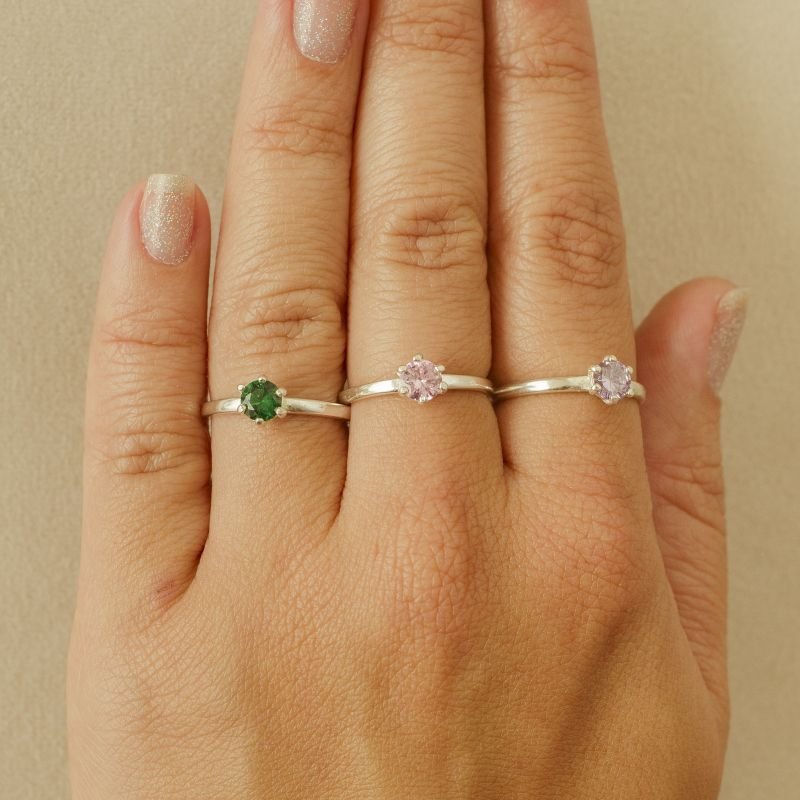 Anel prata800 solitário 6 garras