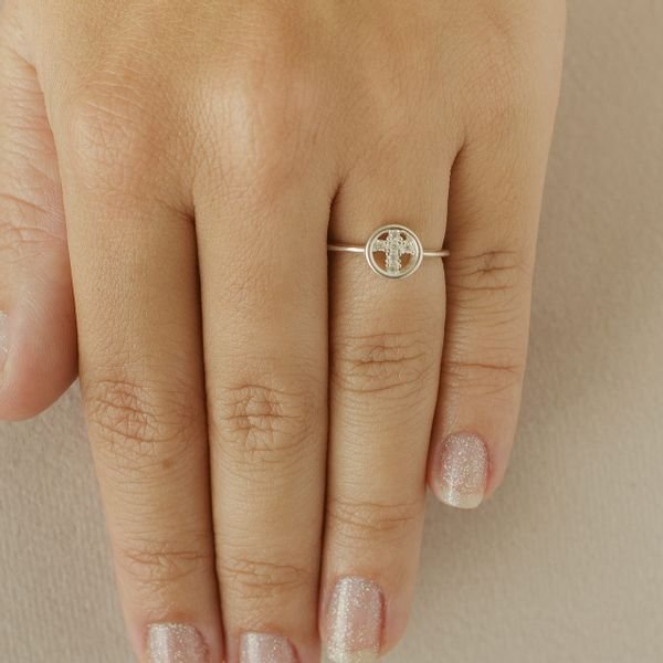Anel prata925 com design com círculo e cruz cravejada