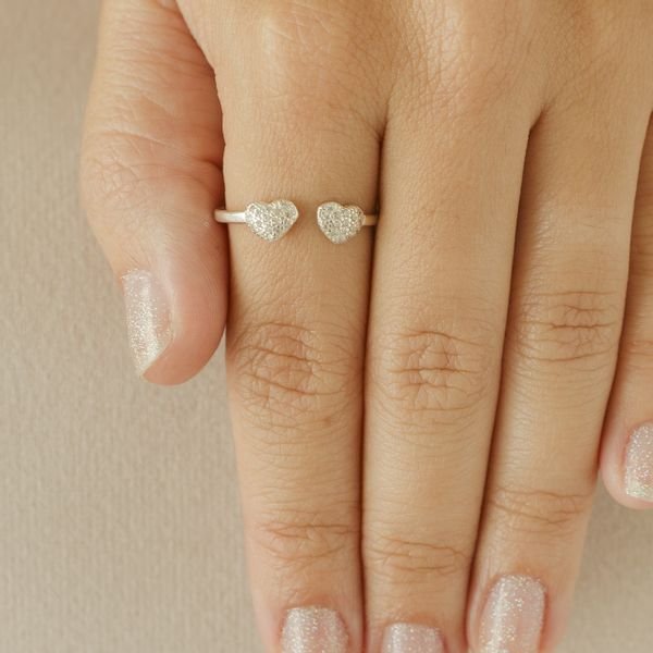 Anel prata925 regulável dois corações cravejados