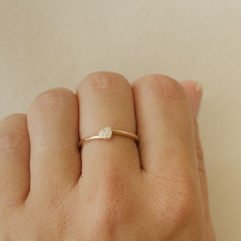 Anel semijoia fino coracao pequeno seis pedrinhas