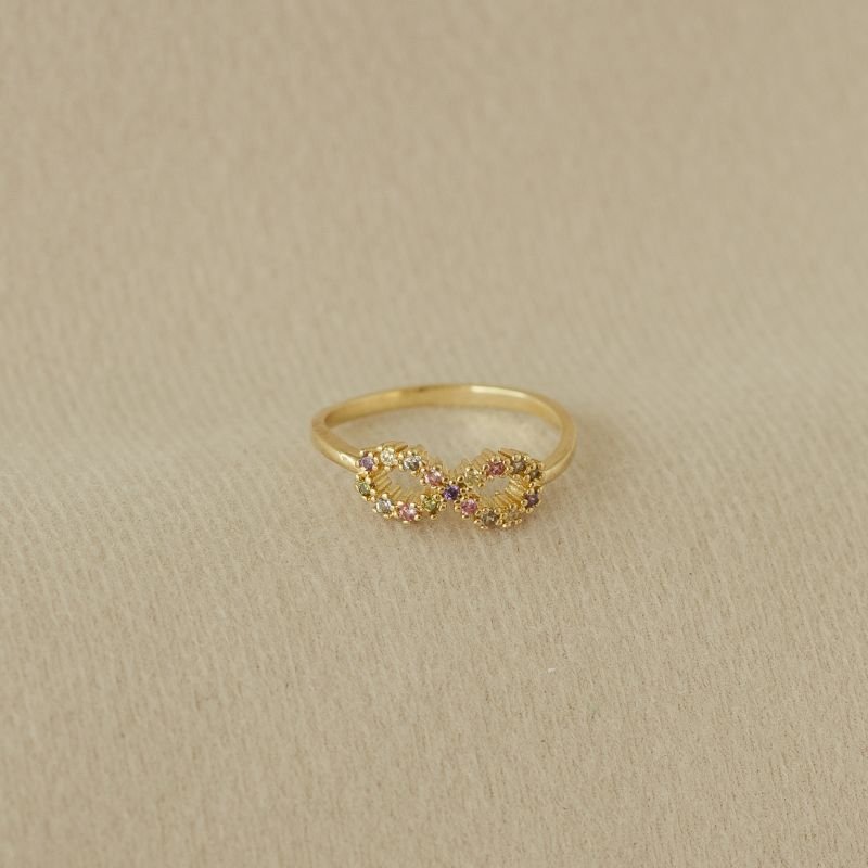 Anel semijoia infinito zircônias coloridas