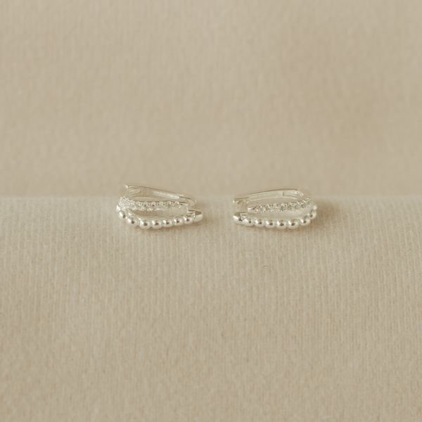 Argola prata925 com design com dois arcos bolinhas cravejados