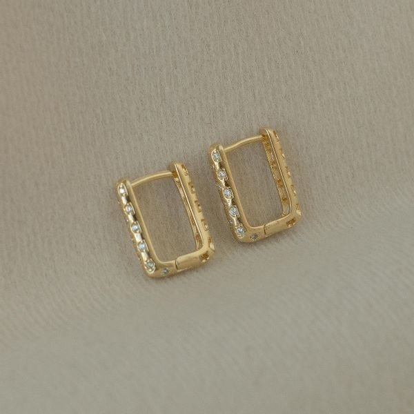 Argola semijoia retangular zircônia design vazado