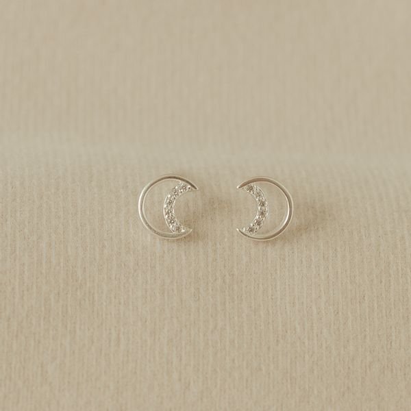 Brinco prata925 lua pequena cravejada