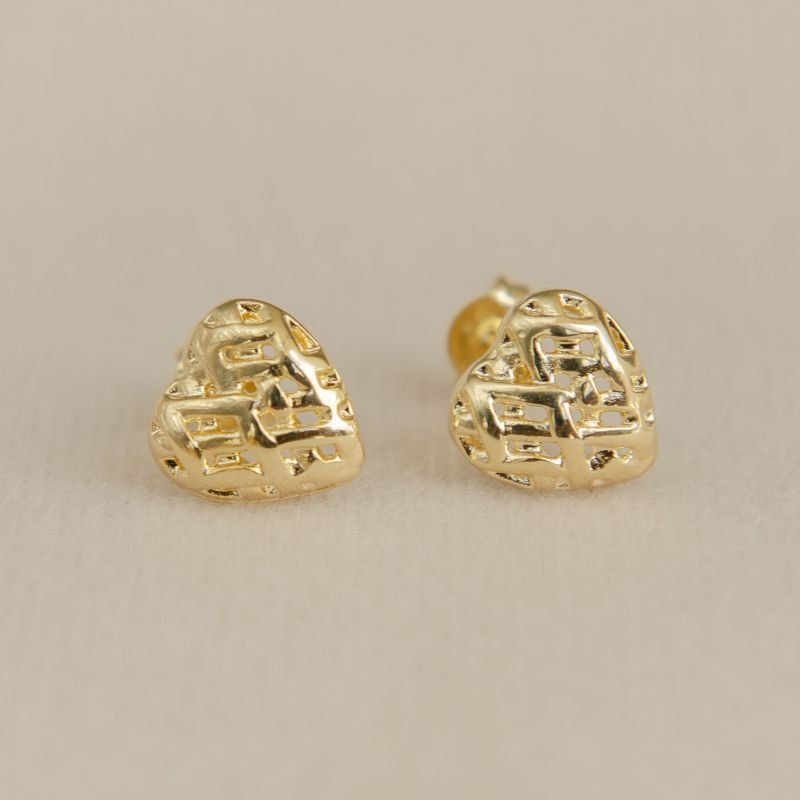 Brinco semijoia coração tracinhos vazados