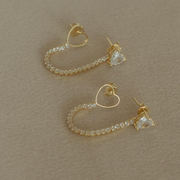 Brinco semijoia coração vazado com zircônia
