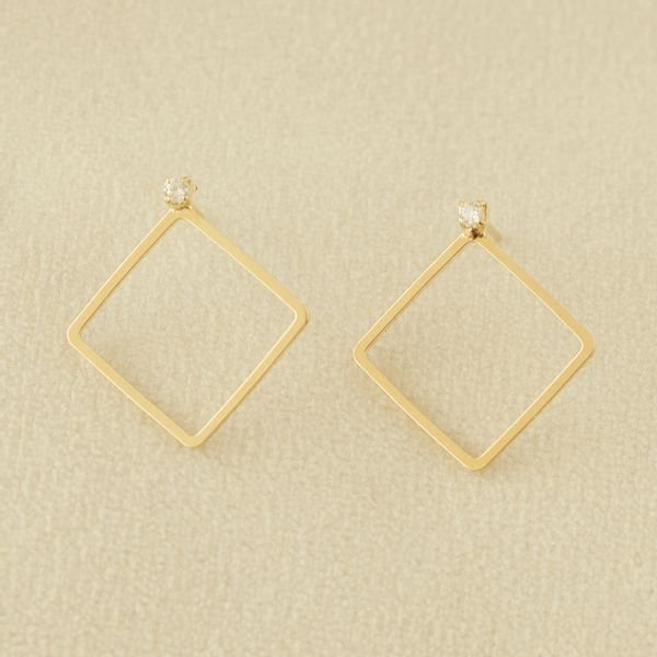 Brinco semijoia hexágono vazado 1 zircônia