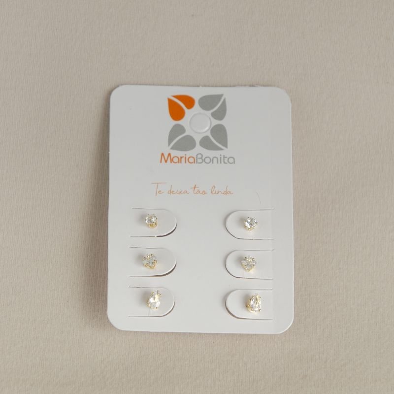 Brinco semijoia kit 3 zirconias quadrada redonda e G