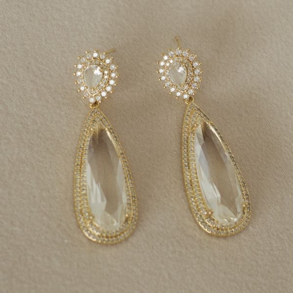 Brinco semijoia luxo em formato de gota com varias zircônias ao redor