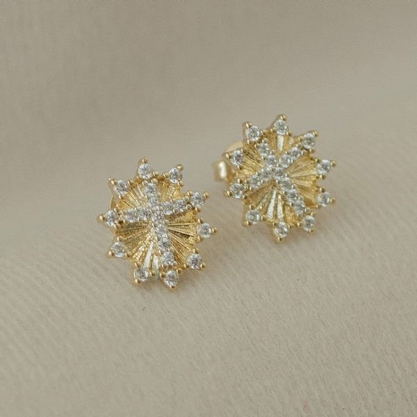 Brinco semijoia oval e cruz cravejada