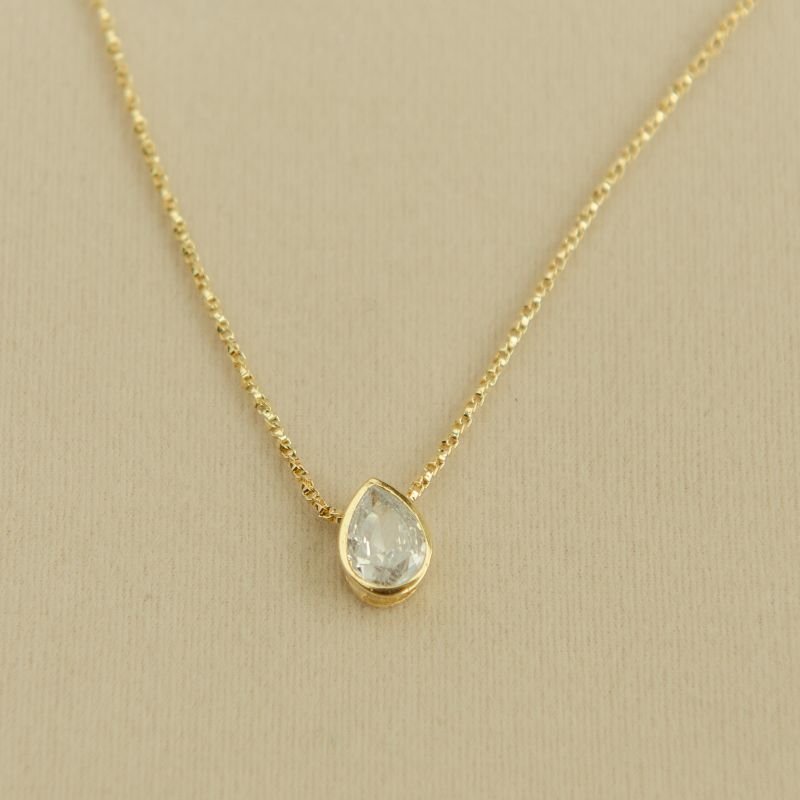 Colar bijuteria fina pedra gota borda lisa dourado