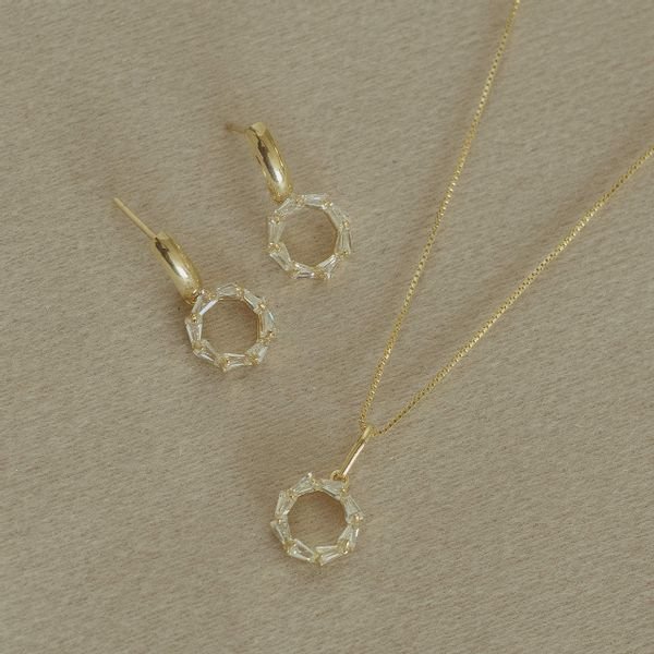 Conjunto semijoia redondo com zircônias transparentes