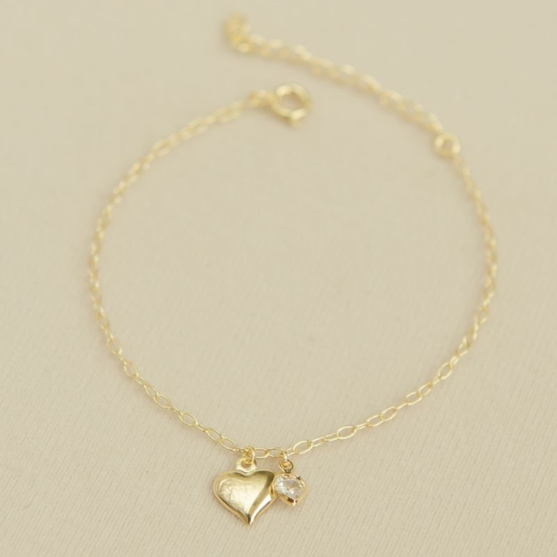 Pulseira bijuteria fina 2 corações liso e zirconi 18cm