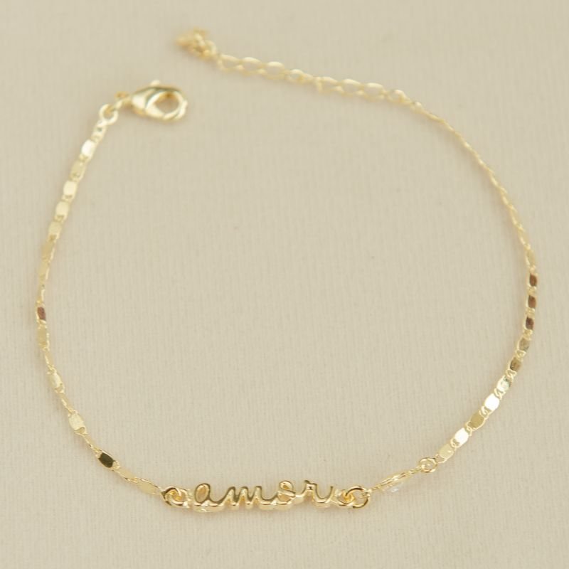 Pulseira bijuteria fina nome amor elos piastrin dourado 18cm