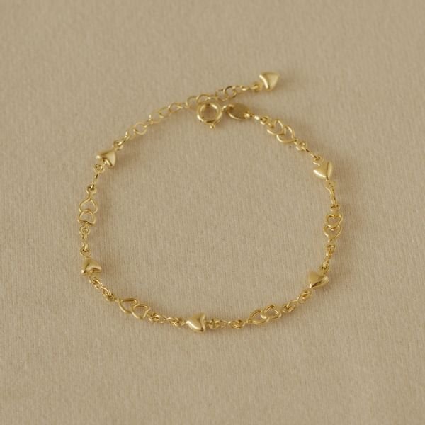 Pulseira toda delicadinha ganha o coração de qualquer pessoa que ama acessórios que trazem consigo leveza e um olhar romântico! Pulseira com elos em formato de coração. Uma peça ideal para deixar seu look mais sofisticado e moderno. Acessório ideal para realizar um mix com outros modelinhos de pulseiras banhadas em ouro 18k! Para complementar seu visual combine com anéis em formato de coração para um look romântico e super moderno. Você vai ficar incrível! Seja criativa e arrase.