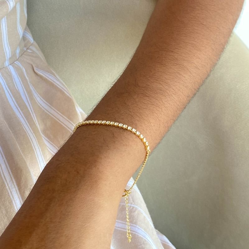 Encante-se com a pulseira composta por elos grumet banhada a ouro 18K! Com 10 milésimos de ouro e 3 camadas de banho, essa peça super delicada tem alta durabilidade e um design único. O toque especial fica por conta das zircônias tornando-a a escolha ideal para adicionar charme e sofisticação ao seu look. Perfeita para o dia a dia, ela combina delicadeza, versatilidade e a elegância do ouro. Não perca a oportunidade de ter essa peça única e, para manter seu brilho deslumbrante, lembre-se de seguir os cuidados de uso!